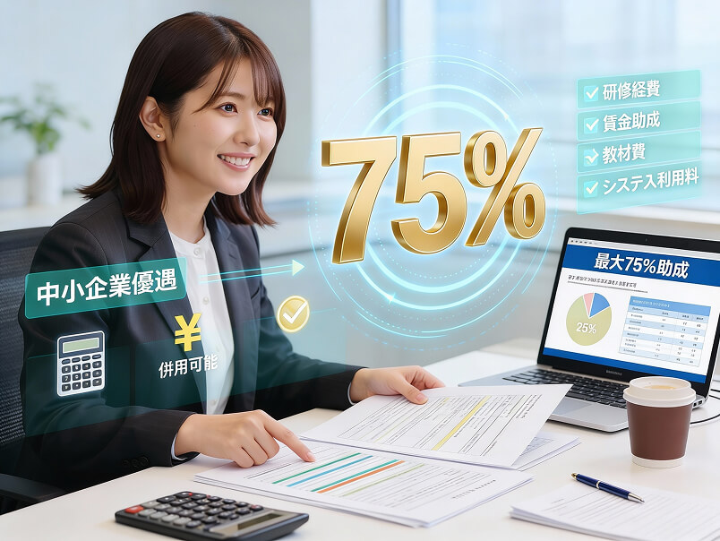 人材開発支援助成金を活用して、 最大75%の費用助成